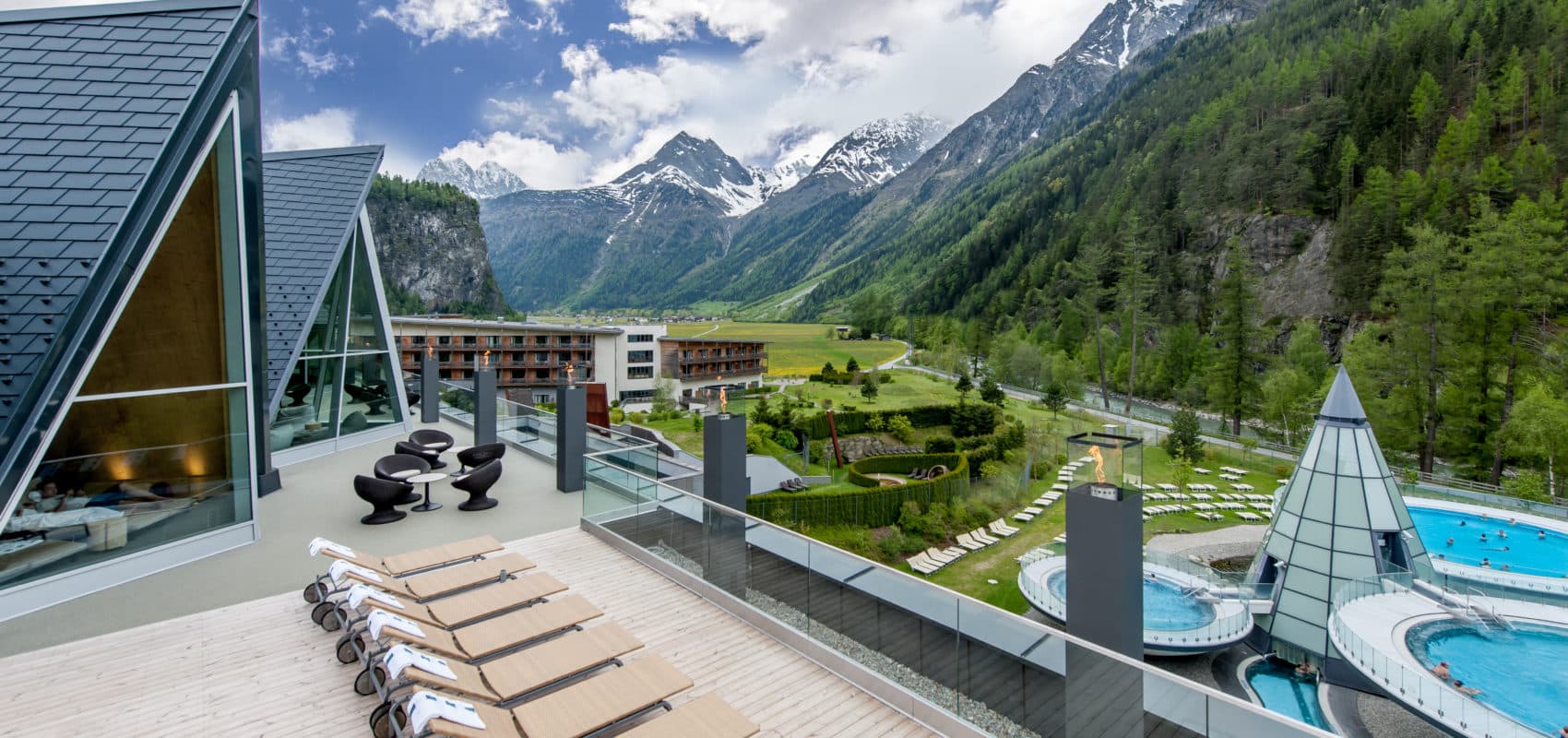 Auf der Suche nach Ruhe, Erholung und einer Auszeit vom Alltag heißt Sie der AQUA DOME Tirol in Österreich mit seinem breiten Spektrum an verwöhnenden Thermenangeboten willkommen. Feinste Küche mit regionalen Produkten aus dem Alpenbogen, gemütliche Hotelzimmer, die Sie wie zuhause fühlen lassen und der Blick auf die imposante Bergwelt des Ötztals geben ihr Bestes dazu, Sie in Ihrem Thermenurlaub in Tiefenentspannung zu versetzen. Vom Hotel gelangen Sie mit dem Bademantel direkt in die Therme.